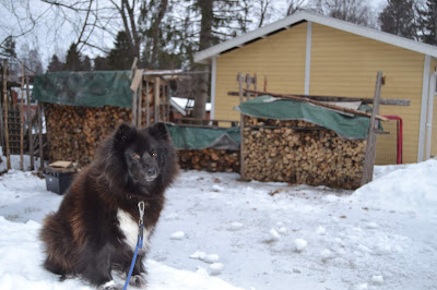 Polttopuut näyttävät riittävän talveksi. Ei ole uhallatehden tarvinnut lämmittää, leuto on talvi ollut. Kohentelin Eliaksen kanssa jäljelläolevat pinot. Pitäisi pian päästä aloittamaan tavanomaiseksi muotoutuneet keväturkot uusien halkopinojen osalta Unimäkeen.